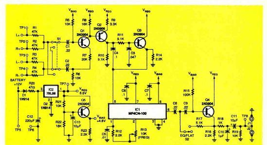Este circuito separa os graves de um sistema para aplicar a um amplificador subwoofer. O circuito é de uma Electronics Now de outubro de 1995.