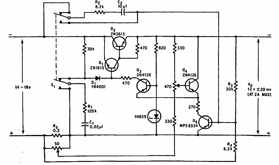 Este circuito de proteção para fontes usando relé foi encontrado numa documentação de 1967. Os componentes são da época, mas podem ser usados equivalentes atuais conforme a corrente da fonte.