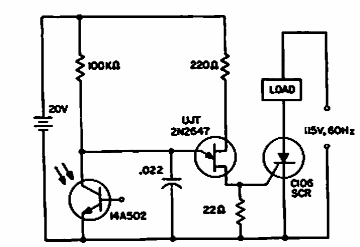 Este circuito de alta sensibilidade foi encontrado num manual de SCRs da General Electric de 1967. Componentes equivalentes podem ser utilizados.
