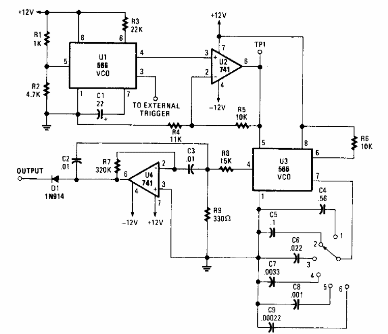 Encontrado numa Popular Electronics dos anos 90, este circuito é intercalado entre o filtro e entrada do osciloscópio para análise.