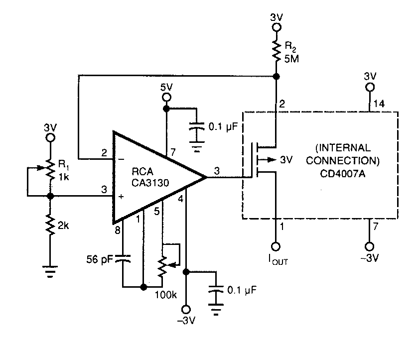 Este circuito ajustável de 0 a 200 nA foi encontrado numa EDN dos anos 90. Os componentes ainda podem ser encontrados com relativa facilidade, pois são CMOS.