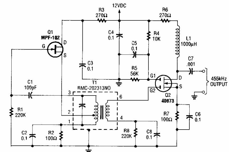 Este circuito foi obtido numa Popular Electronics dos anos 90. Ele serve para ajustes em rádios AM. Os transistores de efeito de campo usados admitem equivalentes.