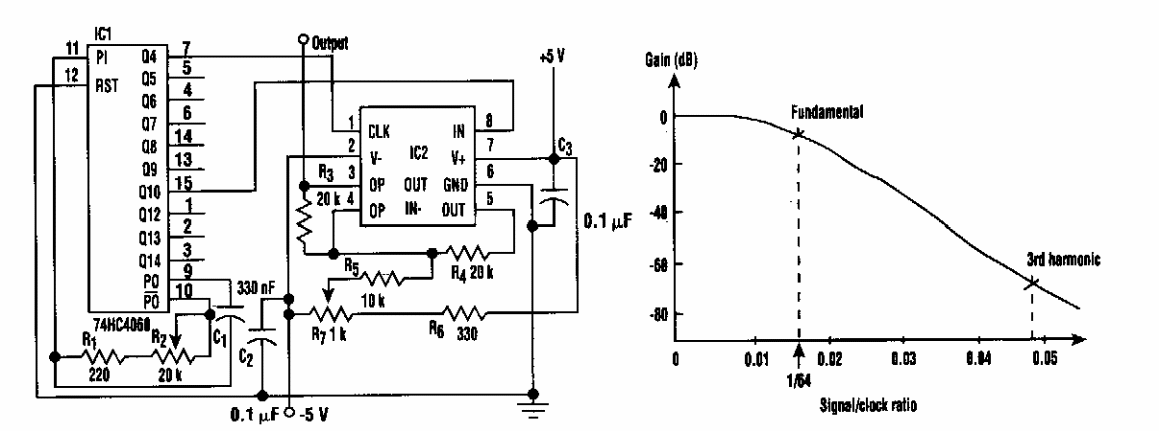 Encontrado em uma Electronic Design dos anos 90, este circuito pode gerar sinais senoidais de 0,1 Hz a 25 kHz com baixa distorção usando um MA292 da Maxim.