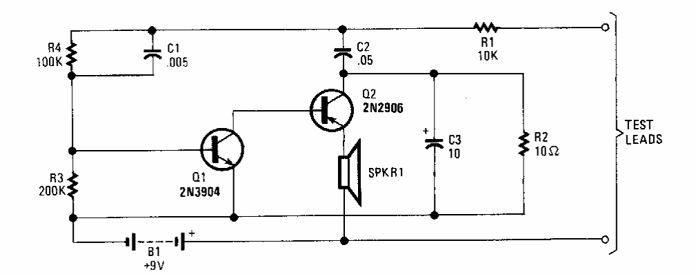 Encontrado numa Popular Electronics dos anos 90, este circuito usa transistores comuns de uso geral em configuração bastante explorada neste site e em nossos artigos.