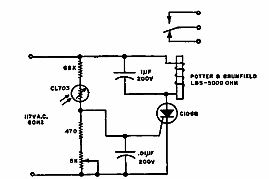 Este circuito é de uma Electronics World de 1968. Ele atua diretamente sobre um relé de corrente alternada de alta tensão. O sensor pode ser um LDR comum.
