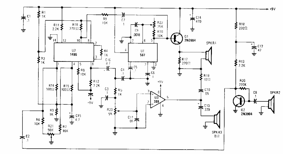 Este circuito foi encontrado numa Popular Electronics dos anos 90. Os sensores podem ser alto-falantes comuns que alcancem de 15k a 25 kHz, tais como tweeters piezoelétricos.