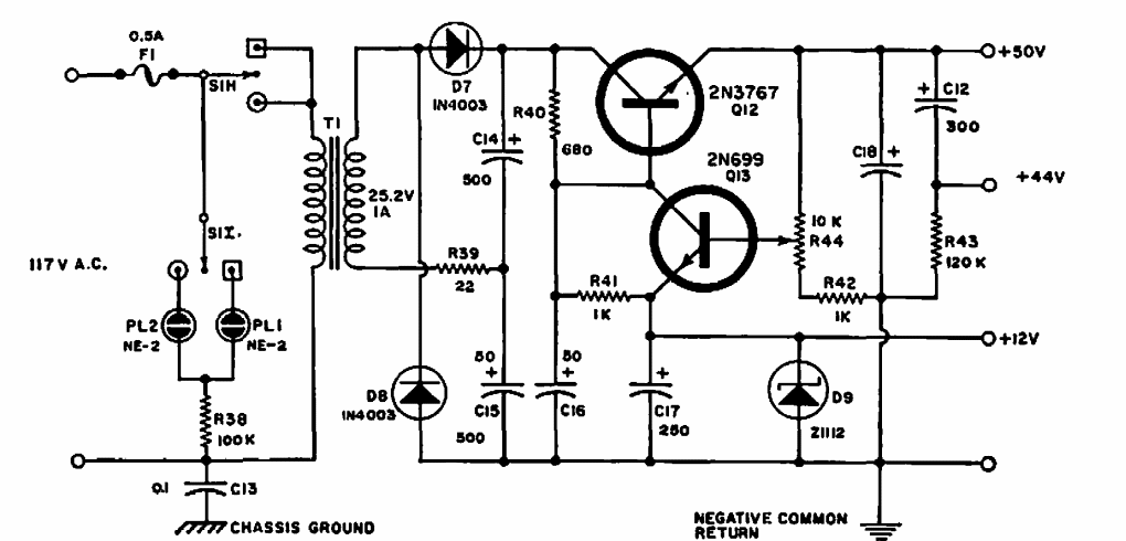 Esta fonte foi encontrada numa Electronics World de 1968. Os transistores são da época. A corrente de cada saída está limitada pelo transformador usado.
