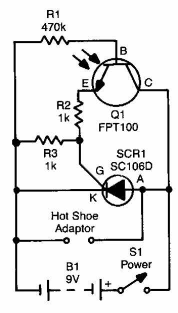 Este circuito foi encontrado numa Popular Electronics dos anos 90. O sensor pode ser qualquer fototransistor.