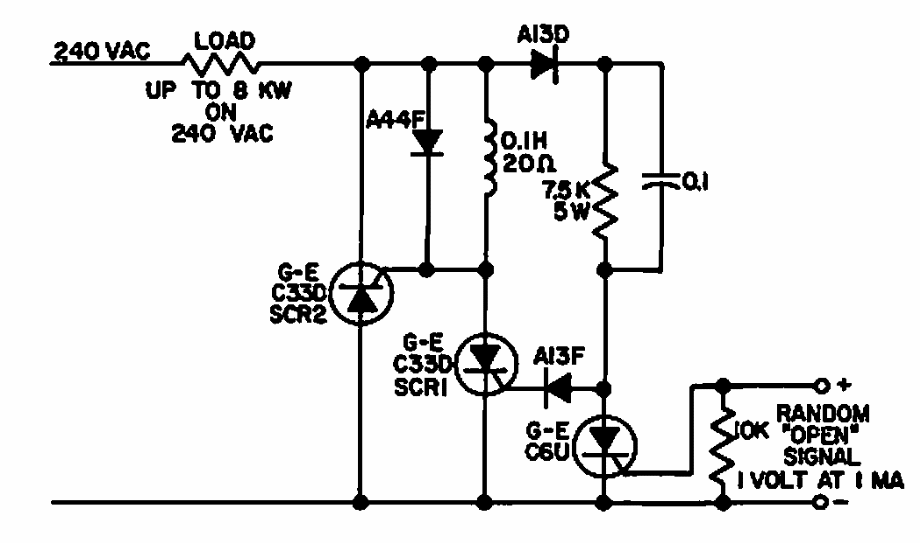 Encontrado num manual de circuitos da General Electric de 1965, este circuito usa SCRs da época. Equivalentes modernos de acordo com a potência podem ser utilizados.