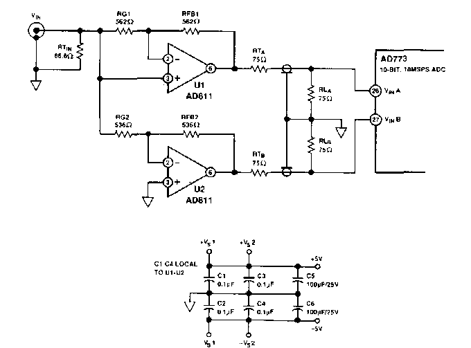 Este circuito foi encontrado em documentação da Analog Devices dos anos 90. O circuito utiliza componentes da época, pouco comuns em nossos dias.