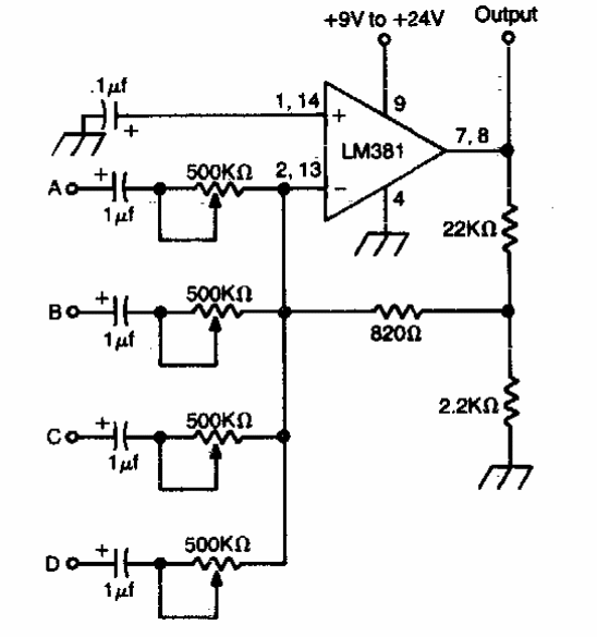 Esta configuração pode ser vista em outros pontos desta seção, obtidas de fontes diferentes. Esta é de uma documentação americana dos anos 70. Operacionais equivalentes com tensões apropriadas podem ser empregados.