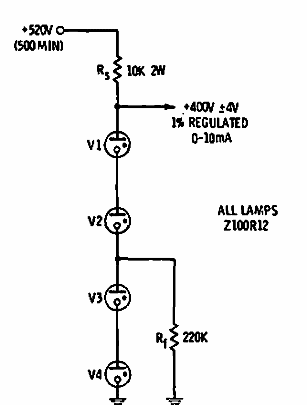 Encontrado numa antiga documentação americana, este circuito usa lâmpadas neon como referência para se obter uma tensão de saída de 400 V.