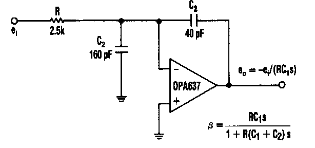 Encontramos este circuito numa Electronic Design dos anos 90. Através de um capacitor ele consegue aumentar a taxa de crescimento de um sinal, conforme a fórmula ao lado do diagrama.