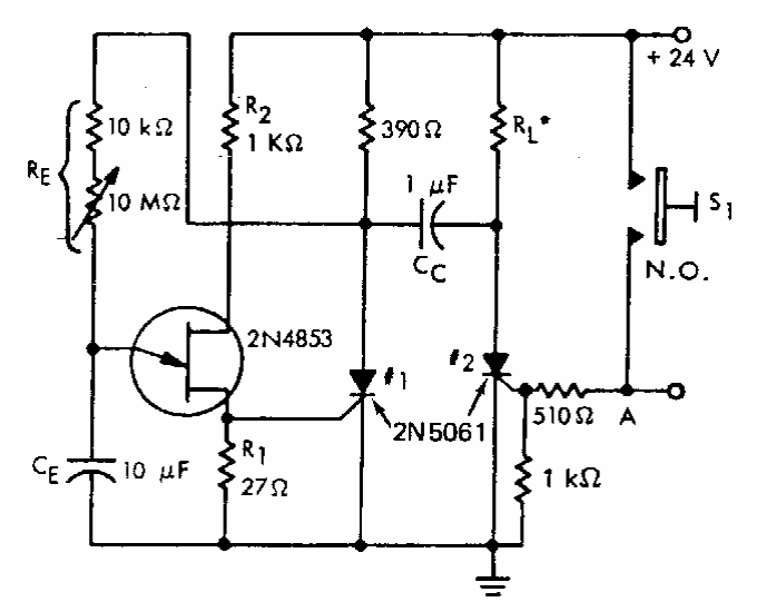 Este circuito foi encontrado numa documentação da Motorola dos anos 90. O circuito usa dois SCRs que devem ser escolhidos de acordo com a carga controlada. O tempo depende de CE.