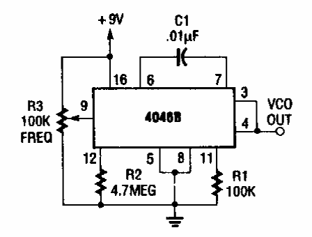 Encontrado numa Radio Electronics dos anos 90, este circuito gera sinais na faixa de 60 Hz a 1,4 Hz, com os valores de componentes usados. C1 pode ser alterado para outras faixas de frequências.