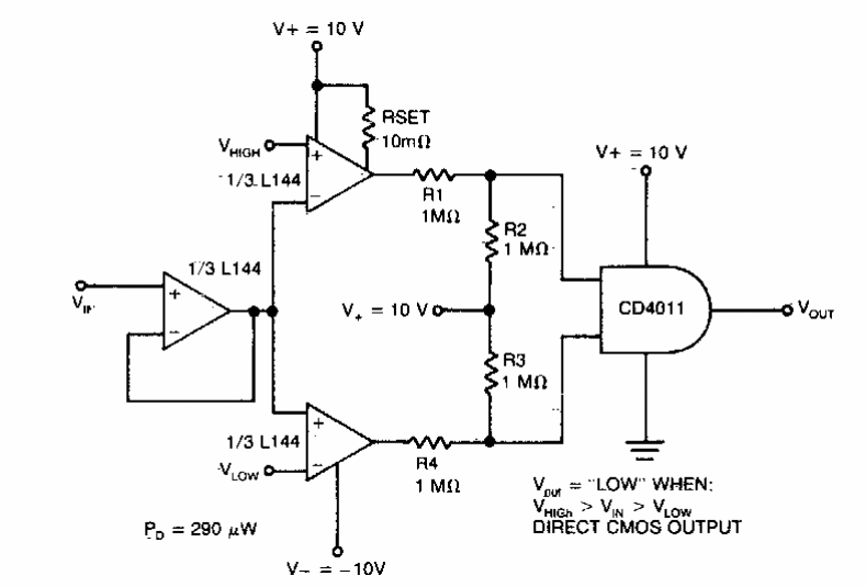 Encontrado numa documentação americana antiga, este circuito emprega alguns componentes da época, caso dos comparadores.