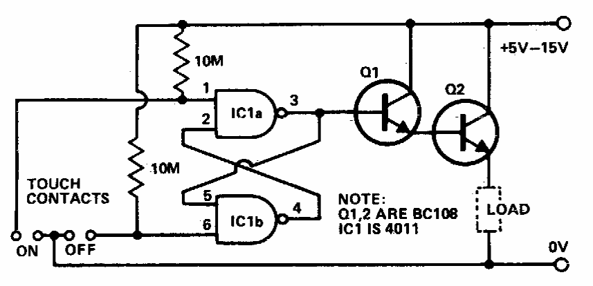 Esta sensível chave de toque aparece neste site vinda de outras fontes. Esta versão foi retirada de uma documentação americana dos anos 90. A fonte não deve ser do tipo sem transformador.