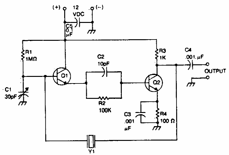 Encontramos este circuito numa documentação americana dos anos 80. Os transistores podem ser de uso geral. A faixa de frequências dos sinais gerados vai de 500 kHz a 10 MHz.