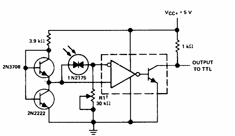 Este circuito de alta precisão foi encontrado em documentação dos anos 90. O circuito integrado é um LM111 ou outro da série. O circuito tem saída TTL podendo funcionar como shield.