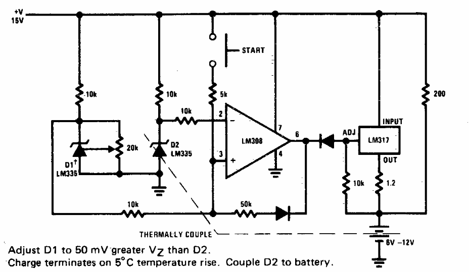 Encontrado em documentação da National Semiconductor dos anos 90, este circuito faz uso de componentes da época, alguns pouco comuns atualmente. O circuito deve ser ajustado para uma tensão 50 mV maior que Vz.