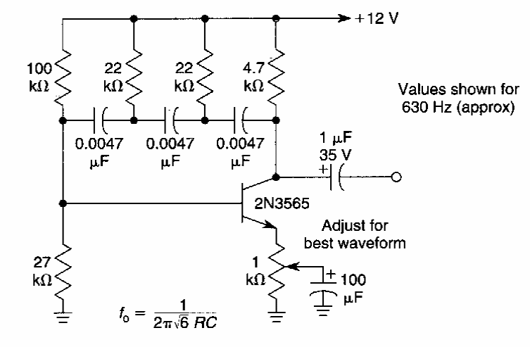 Este circuito usa um transistor de uso geral e tem ajuste da forma de onda. Encontramos numa documentação americana dos anos 90.