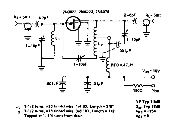 Este amplificador com fonte comum neutralizado foi encontrado em documentação dos anos 70. O transistor de efeito de campo da época pode ser substituído por equivalente.