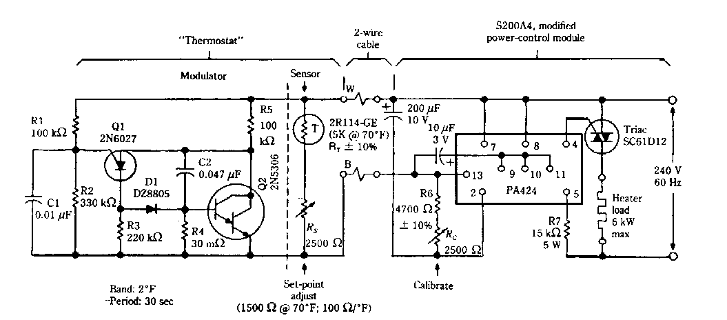 Este circuito com chave de passagem por zero foi encontrado numa documentação dos anos 90. O PA424 da GE é o elemento principal do circuito, pouco comum em nossos dias.
