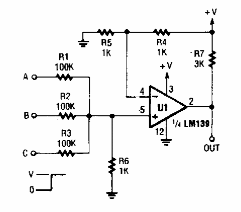 Usando um comparador de tensão, encontramos esta porta AND numa Popular Electronics dos anos 90. A tensão de alimentação é de acordo com a lógica usada.