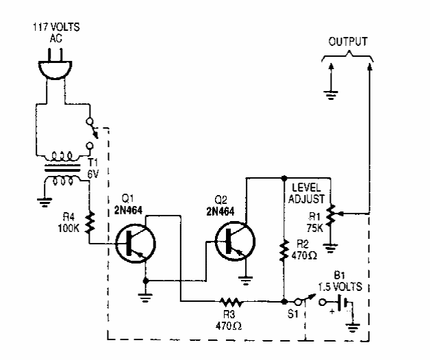 Baseado na frequência da rede de energia, este circuito produz sinais quadrados para uso em circuitos digitais como relógios e cronômetros. O circuito é de uma Popular Electronics dos anos 90.