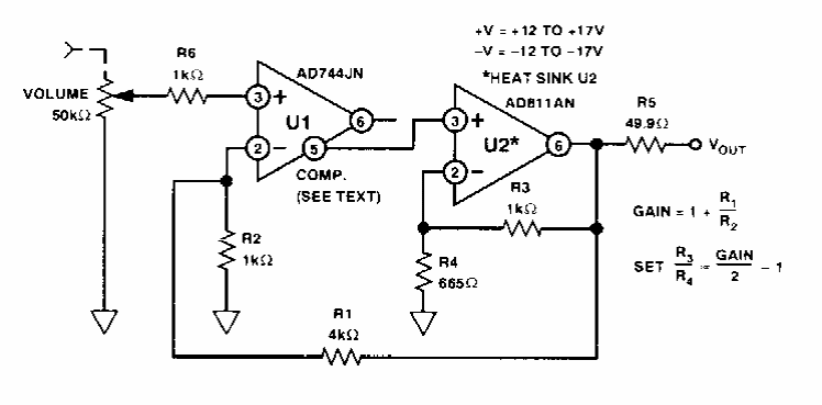 Este circuito de baixa distorção foi encontrado numa documentação da Analog Devices dos anos 80. Os circuitos integrados usados não são muito comuns hoje.