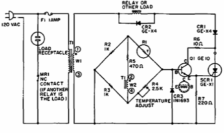 Este circuito foi encontrado num manual antigo de SCRs da GE. O SCR deve ser de acordo com o relé e o transformador também.