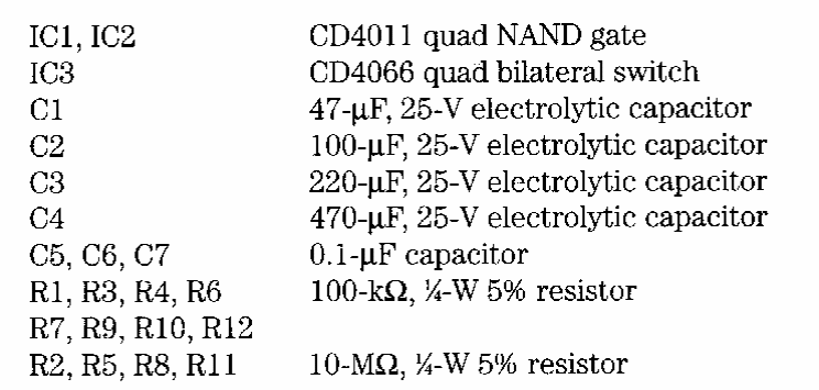 Este circuito temporizador foi encontrado numa documentação antiga. A tecnologia é CMOS. A alimentação pode ser feita com tensões de 3 a 12 V. O tempo depende de R1 e C1.