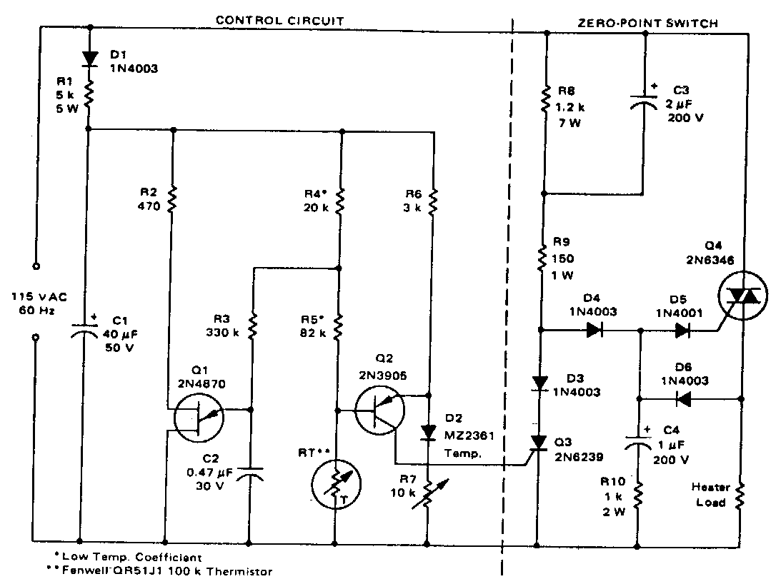 A corrente do triac depende da potência do elemento de aquecimento. Este circuito foi encontrado em documentação dos anos 80. Os componentes são comuns ainda hoje, admitindo equivalentes.