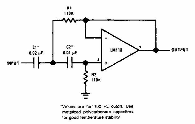 Este circuito é de uma documentação da National Semiconductor. O amplificador operacional é de tipo da época. A fonte deve ser simétrica.