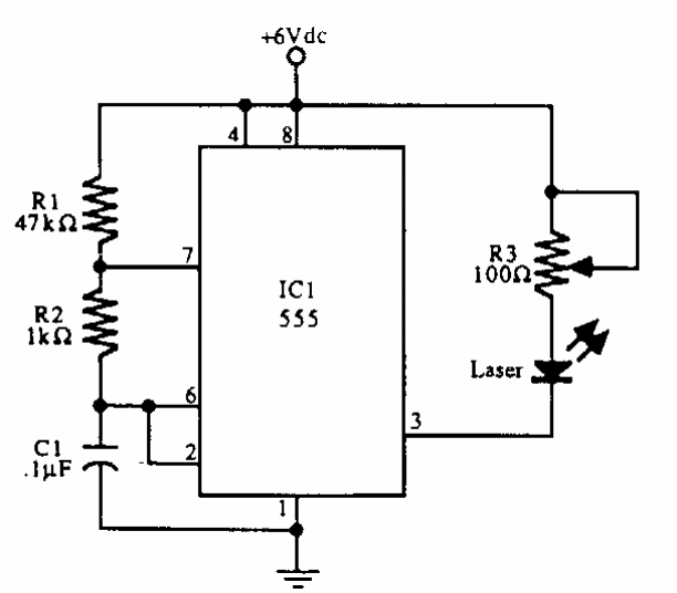 Este circuito pulsante foi encontrado em documentação dos anos 90. O circuito conta com um potenciômetro de fio para ajuste da intensidade dos pulsos.