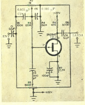 Encontrado numa Eletrônica Popular de agosto de 1867 este circuito pode ser elaborado com FETs de uso geral modernos.
