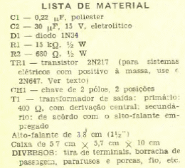 Este circuito oscilador de áudio muito simples foi encontrado numa Eletrônica Popular de maio de 1967. O transformador é de saída para transistores e o transistor qualquer PNP de uso geral.