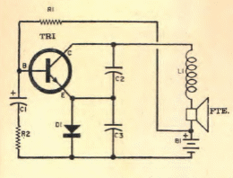 A finalidade deste circuito é imitar o pingar de uma torneira ou goteira. O circuito foi encontrado numa Eletrônica Popular de março/abril de 1969. O transistor admite equivalente.