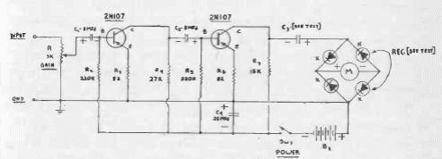 Este medidor de intensidade sonora ou nível de áudio foi encontrado numa documentação de 1956. Os transistores são de germânio da época e o indicador pode ter fundo de escala de 100 uA a 1 mA.