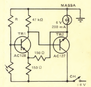 Este circuito sensor de ré foi encontrado numa Eletrônica Popular de março de 1968. O circuito usa lâmpada e como sensor um LDR. Podem ser usados componentes modernos como LED e transistores atuais.