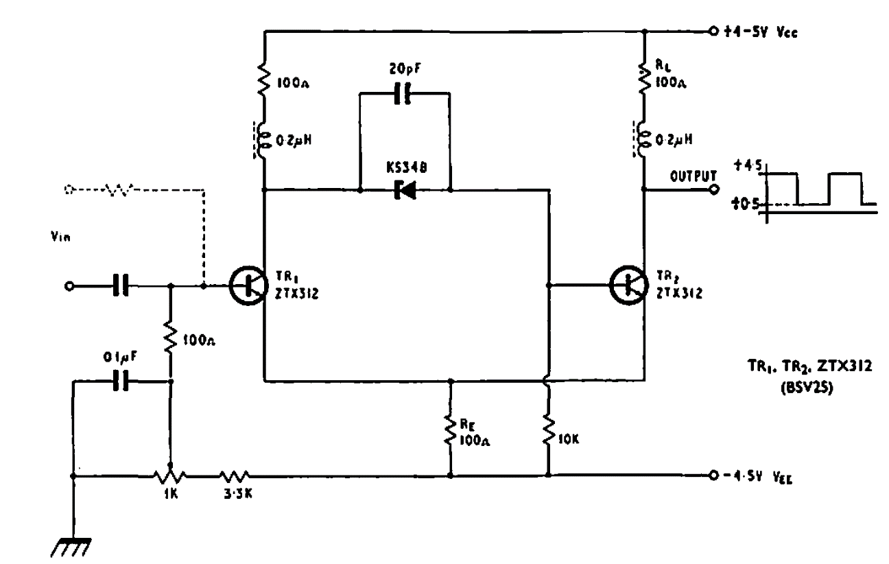 Este disparador Schimitt foi encontrado numa documentação da Ferranti de 1969. Os transistores podem ser equivalentes modernos.