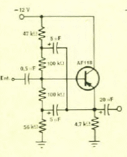 Esta etapa preamplificadora com 1 transistor de germânio foi encontrada numa Eletrônica Popular de 1968. O circuito tem uma impedância de entrada de 20 M ohms.