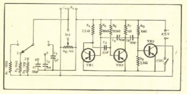 Este circuito para medida de resistências e capacitâncias foi encontrado numa Eletrônica Popular de junho de 1967. Pode ser adaptado para usar transistores equivalentes modernos.