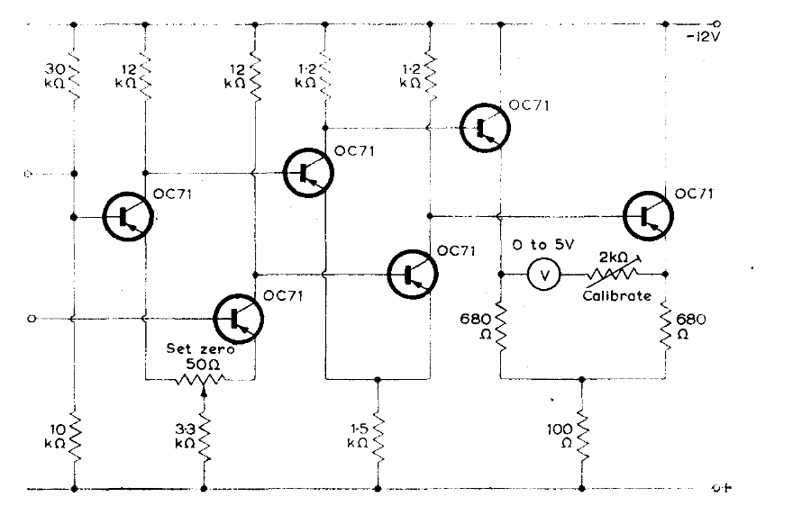 Este circuito foi encontrado no manual de transistores da Mullard de 1960. O circuito usa transistores de germânio da época.
