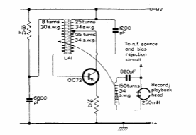 Este circuito era utilizado como apagador de gravadores de fita antigos. O circuito é de um manual de transistores da Mullard de 1960.