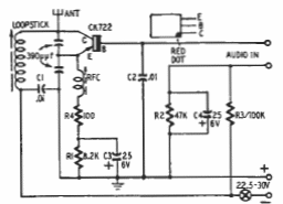 Este transmissor para curto alcance na faixa de ondas médias foi encontrado numa publicação da Raytheon dos anos 60. O transistor é de germânio e a bobina para a faixa de ondas médias.