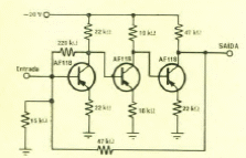Este amplificador de 3 transistores foi obtido numa Eletrônica Popular de setembro/outubro de 1968. Os transistores podem ser tipos equivalentes modernos.