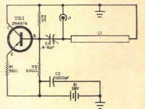 Este oscilador de 1,6 GHz com 40 mW de potência de saída foi encontrado numa Eletrônica Popular de maio/junho de 1969. O transistor é de tipo especial da época.