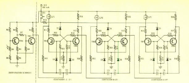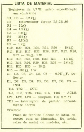 Este circuito experimental didático foi encontrado numa Eletrônica Popular de maio de 1968. Os transistores são de uso geral da época. As lâmpadas podem ser substituídas por LEDs numa versão moderna.