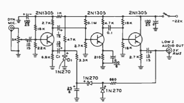 Este circuito foi encontrado numa publicação para radioamadores de 1977. Os transistores são tipos comuns de uso geral da época.